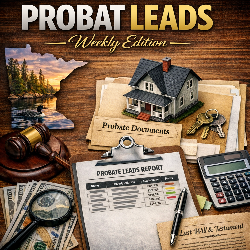 This week’s Minnesota probate filings produced 24 real‑estate‑qualified cases across Hennepin, Ramsey, and Anoka counties. Every case included either a probate homestead or probate‑controlled real estate, with several filings showing out‑of‑state personal representatives, self‑represented PRs, and multiple high‑value properties, including several homes above $400k and one non‑homestead parcel valued over $1.5M. All information is sourced directly from official court‑filed documents, and the list is filtered to include probate real estate cases exclusively—no joint tenancy, no TOD/POD transfers, and no non‑probate assets. This week’s dataset is clean, actionable, and ready for investors who want early access to motivated‑seller situations.